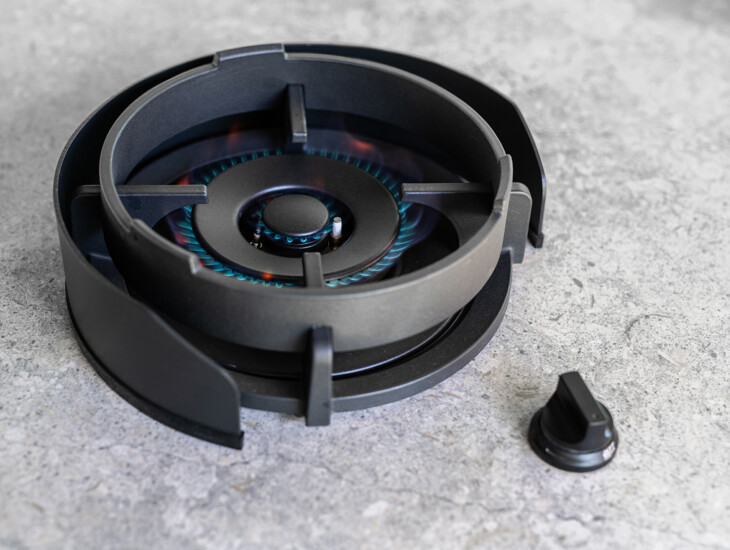 De uitdaging in dit ontwerp was om met de brede range aan apparatuur een rustig geheel te creëren. Dit is bereikt door een royaal eiland te ontwerpen in een rustige, warme kleurstelling. Door het werkblad aan de ene zijde naar de vloer door te trekken en aan de andere zijde in de bar terug te laten komen blenden de verschillende materialen op een mooie manier en ontstaat een elegante balans in het ontwerp.