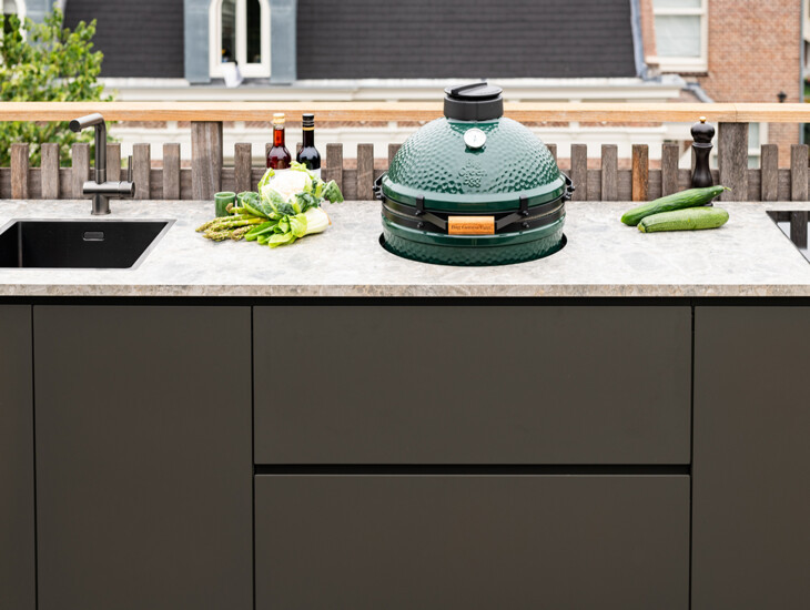 In samenwerking met Big Green Egg integreert COOXS deze alleskunner naadloos in uw buitenkeuken. Ieder model kan perfect worden ingepast in het ontwerp, zodat comfort en design hand in hand gaan. Het strakke uiterlijk maakt de Big Green Egg bovendien tot een echte blikvanger, terwijl u verzekerd bent van jarenlang kookplezier. Laat de lange zomeravonden maar komen.