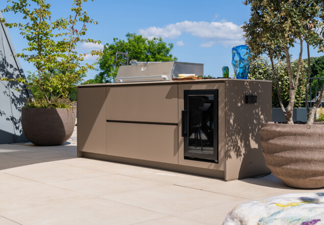 De kracht van de Concepts Cooktop 240 buitenkeuken ligt in het slimme en efficiënte ontwerp. De Beefeater-gasbarbecue wordt naadloos geïntegreerd in de kasten, waardoor maximale opbergruimte behouden blijft.