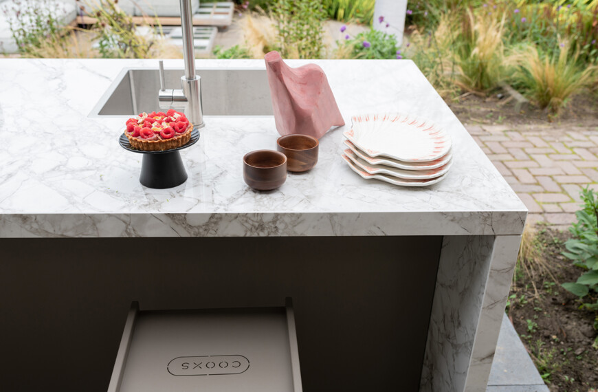 Maak de kastindelingen nog efficiënter met praktische toevoegingen zoals afvalemmers, bestekindelingen en hakensets. Zo wordt de Essence 240 buitenkeuken zowel van buiten als van binnen een toonbeeld van luxe en comfort.