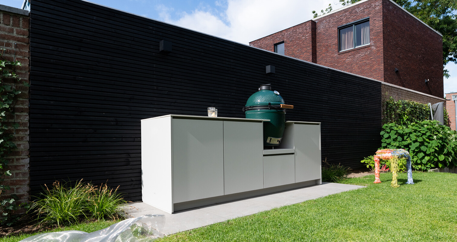 De echte barbecueër herkent het wel. Het gemis aan voldoende opbergruimte en werkruimte. Vanuit de wens om dit op te lossen configureerden we samen met de klant deze Concepts buitenkeuken. Met ruimte kasten voor alle accessoires en voldoende werkruimte om de gerechten op te bereiden. Door de buitenkeuken centraal in de tuin te plaatsen, tegen een contrasterende achterwand, wordt de buitenkeuken een centrale hotspot in de tuin. De plek waar elegant design en ultiem comfort samenkomen