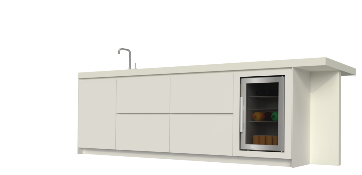 This modern, white outdoor kitchen has a refreshing character and is equipped with luxurious accessories. This makes the outdoor kitchen not only a feast for the eyes but also a comfortable masterpiece. In terms of cooking appliances, a conscious choice was made for an induction cooktop, alongside a teppanyaki grill. After all, outdoor cooking is so much more than barbecuing on a rugged barbecue.